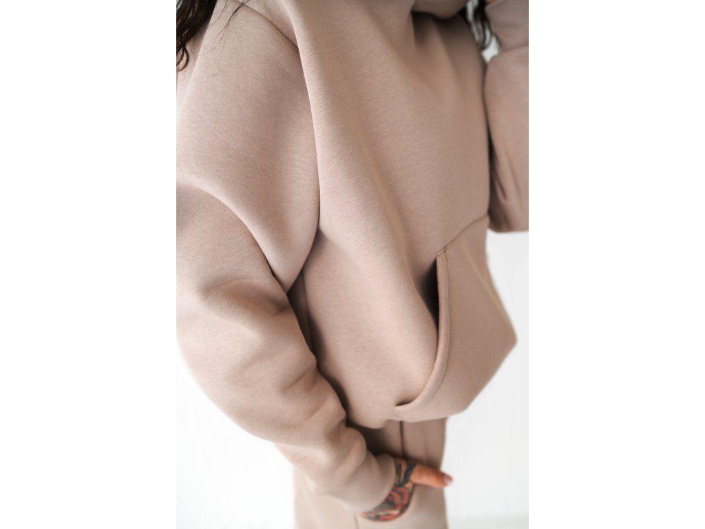 Pohodlný a stylový set z nové jarní kolekce, který si zamilujete pro jeho jednoduchost a eleganci. Mikina s kapucí a pohodlné tepláky rovného střihu vytváří dokonale sladěnou soupravu pro každý den.