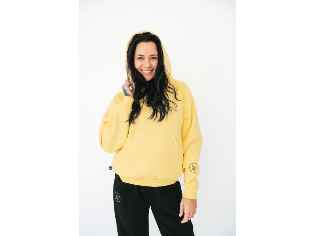 Chtěly jste i klasický střih vaší oblíbené mikiny, tak ji tady máte ! Pohodlná dámská mikina s kapucí ve žluté barvě, ideální na každodenní nošení. Vysoká gramáž a počes rozhodně zahřejí.